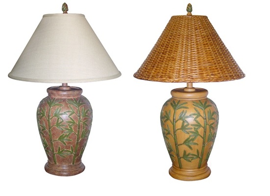 Bamboo Design Resin Lamp with White or Wicker Shade