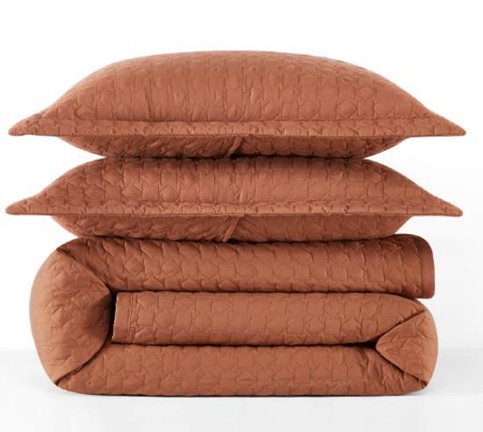 Casino Diamond quilted scarves and shams feature a striking modern geometry of diamonds and squares. Deep earth tones add a pop of color.