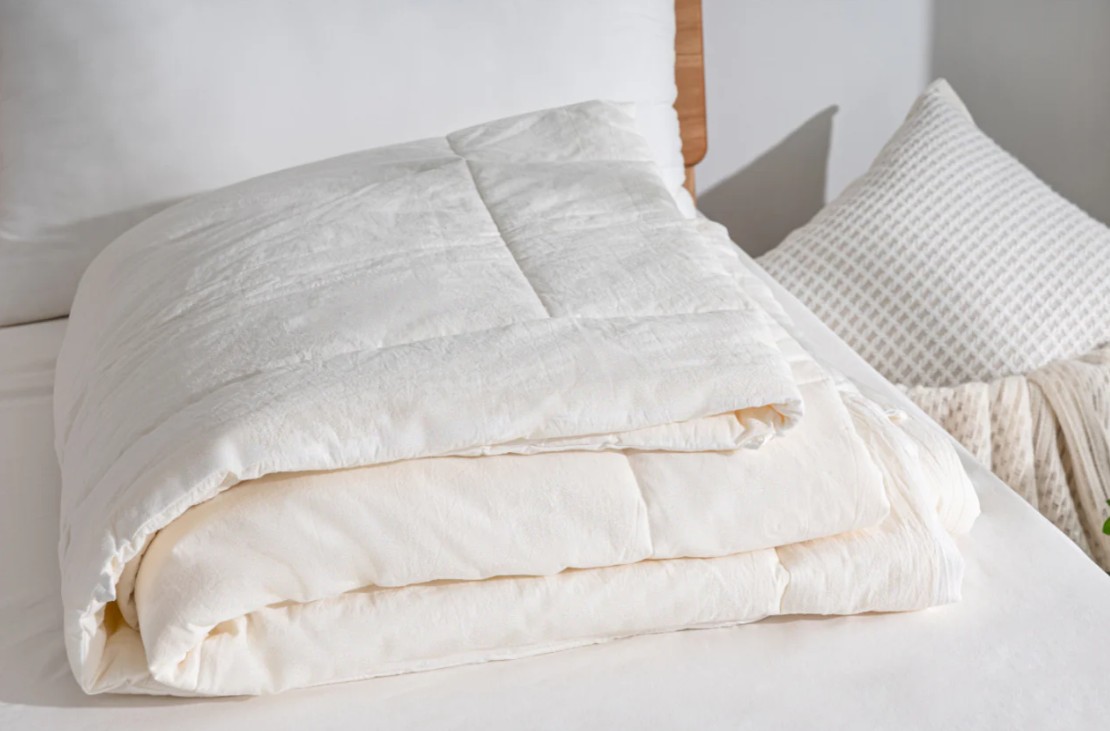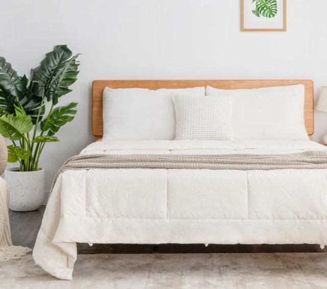 Drift off to sleep with our duvet made with luxurious natural materials. It's filled with soy-based fiber for softness and breathability, providing a cozy and inviting feel that's lightweight yet warm enough for all seasons.