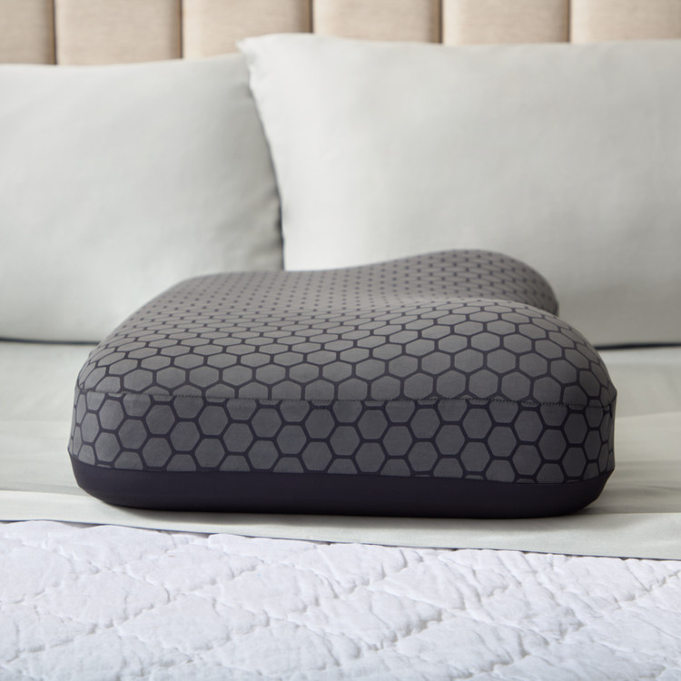 Lifting, cradling, and cooling all in one—that's the HexCurve pillow. The ergonomic central curve and lifted corners create different zones of support for people with multiple sleep styles. A raised cheek area adds needed support for side sleepers, while the center gently cradles the head and neck for back sleepers. And for even more comfort, plush ActiveDough memory foam helps relieve pressure points with a light, responsive feel. A zippered cover snugly fits the unique design, and a printed OmniPhase phase change material grid on the cover creates an actively cooling network that moves heat away from the head and neck.