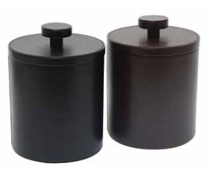 The London Faux Leather collection offers versatile shapes and sizes. High - end durable vinyl constructed around sturdy forms, provide long - lasting service. Round ice bucket available in black or brown faux leather. Available with or without knob. 5" diameter.