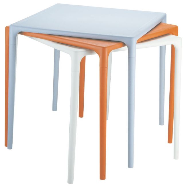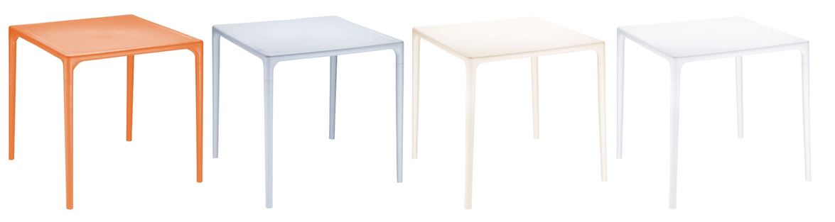 Mango 28 inches square outdoor dining table. Made from marine grade resin. Very strong and heavy. Great for patios, balconies, garden and poolside dining. Accomodates four guests. Preferred by restaurants and hotels. Stackable. Resin plastic is resistant to outdoors and harsh weather conditions.