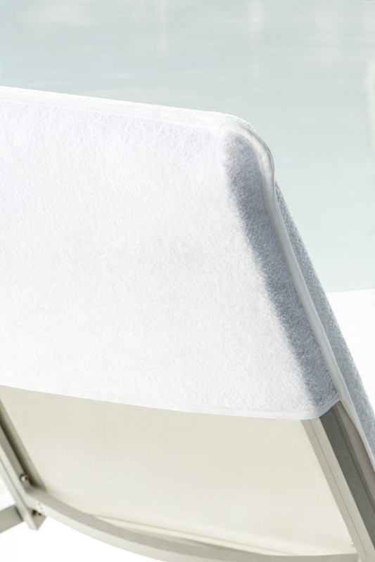 100% cotton terry cover with a fitted hood and cotton tape finish on all sides. Fits lounge chairs up to 27” wide (80” x 30”)